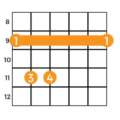 - Barre all strings at 9th fret